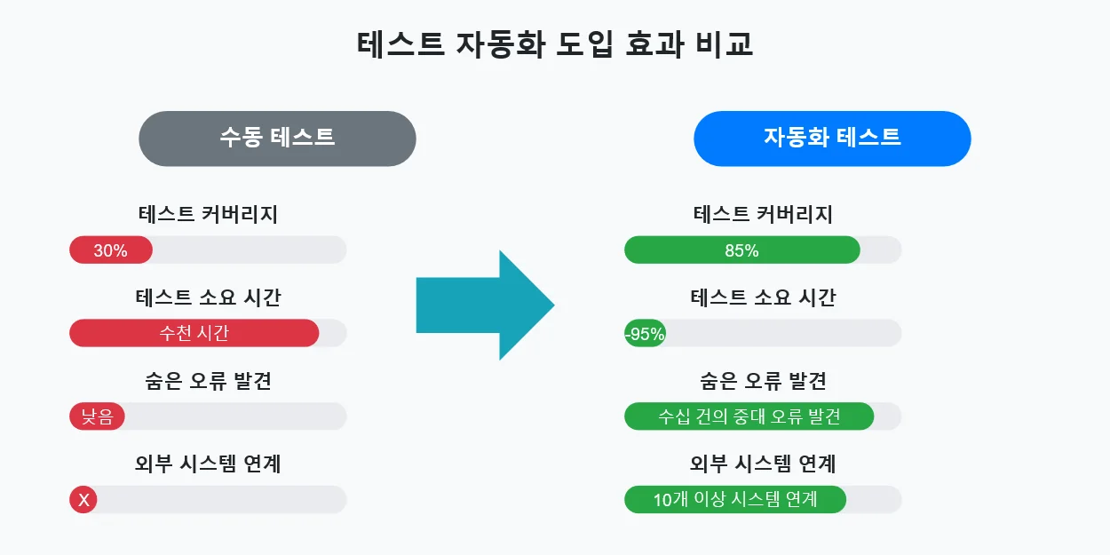 이러한 접근법은 테스트 환경 구축 비용을 줄이면서도 종합적인 비즈니스 프로세스 검증을 가능하게 했습니다.
