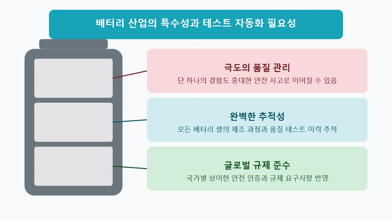 일반 제조업과 달리, 배터리 산업은 다음과 같은 특수한 요구사항이 있습니다: